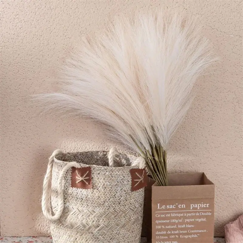 Bring soft texture and timeless elegance to your home with these artificial fluffy pampas grass stems. Featuring a natural beige tone and feathery look, these stems perfectly mimic the charm of real pampas grass without shedding or maintenance.