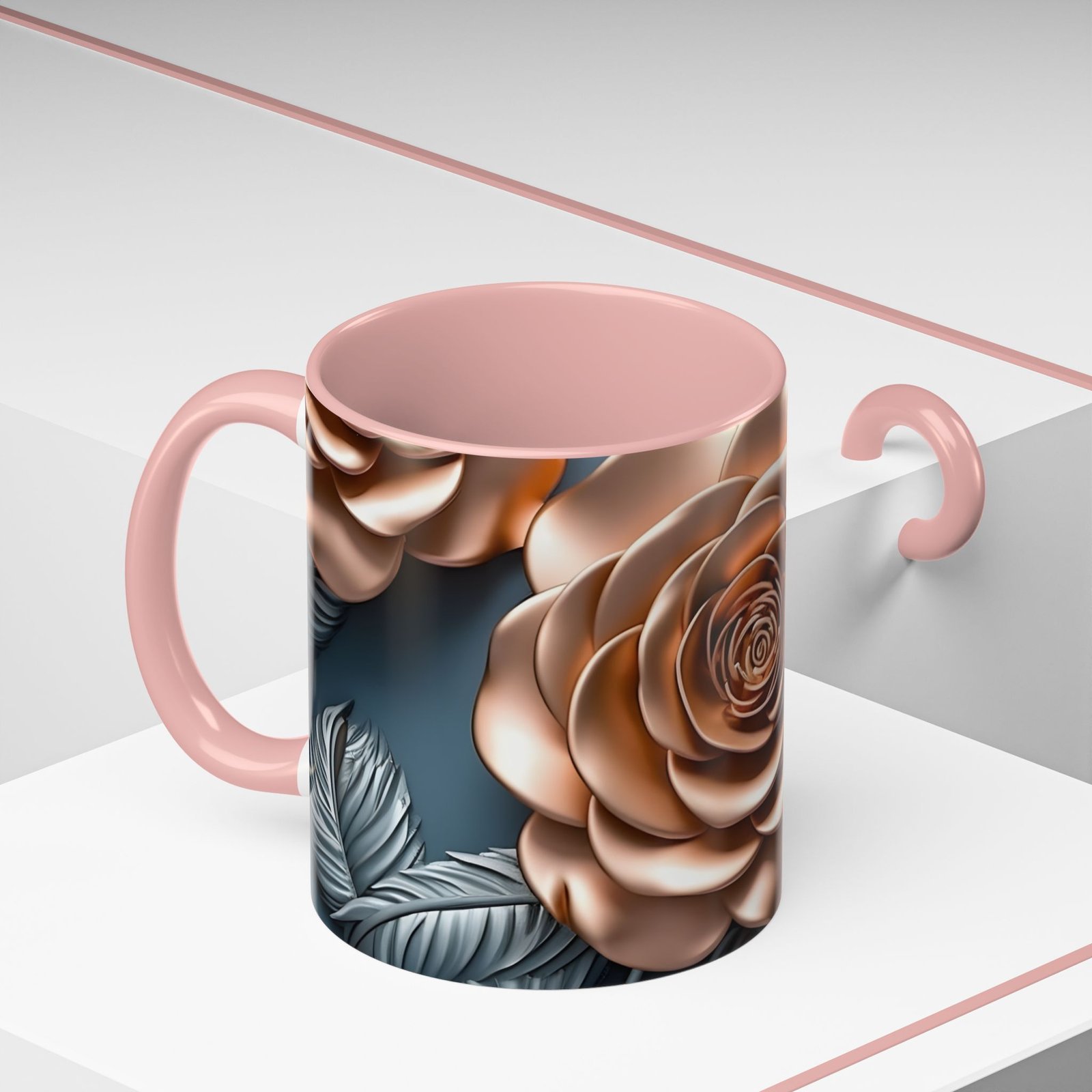 This Coffee Mug features a beautiful Gold Flower design, adding a touch of elegance to your morning routine. Microwave and dishwasher safe, this vibrant mug is made of white ceramic with a colored interior and handle. Perfect for coffee or tea lovers, this eye-catching mug is available in two sizes and multiple color options.