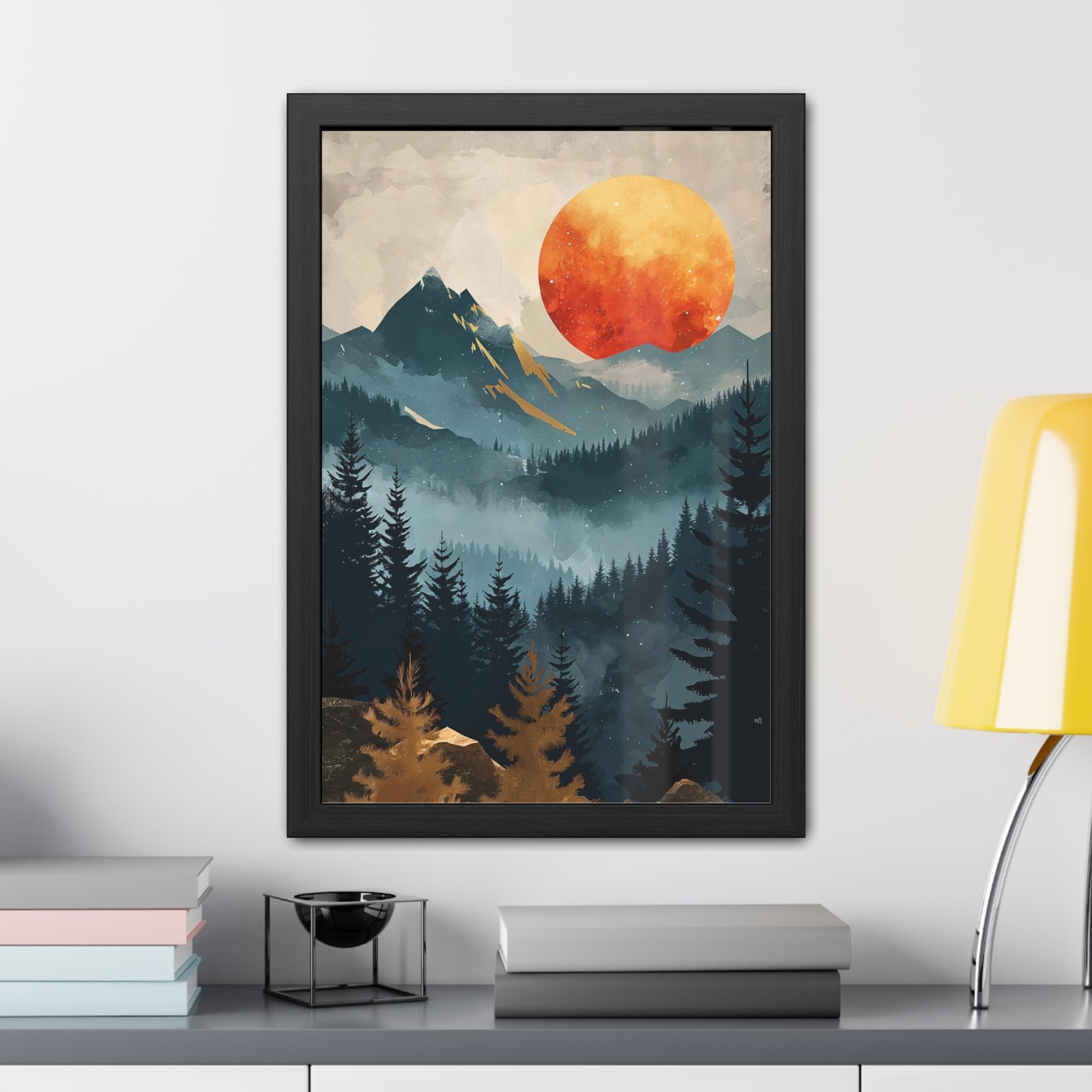 Sunset Mountain Abstract Art Framed Posters – Home Decor Wall Art